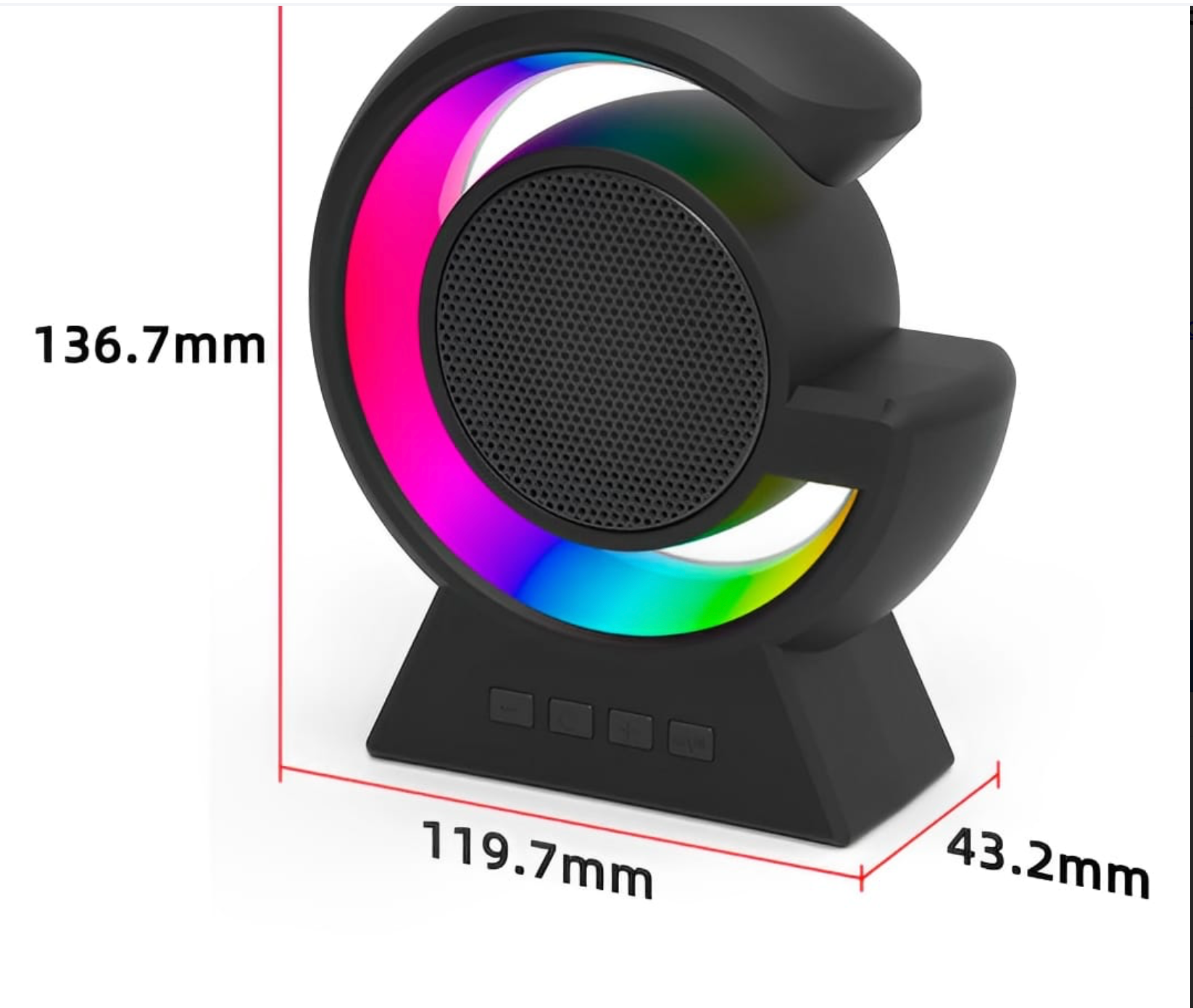 Enhance your space with the BX-39 Mini G Wireless Speaker — a perfect blend of rich stereo sound, vibrant RGB ambient lighting, and modern wireless charging convenience. Designed to complement Pakistani home décor, this sleek bedside lamp and portable speaker adds style and functionality to any room.
