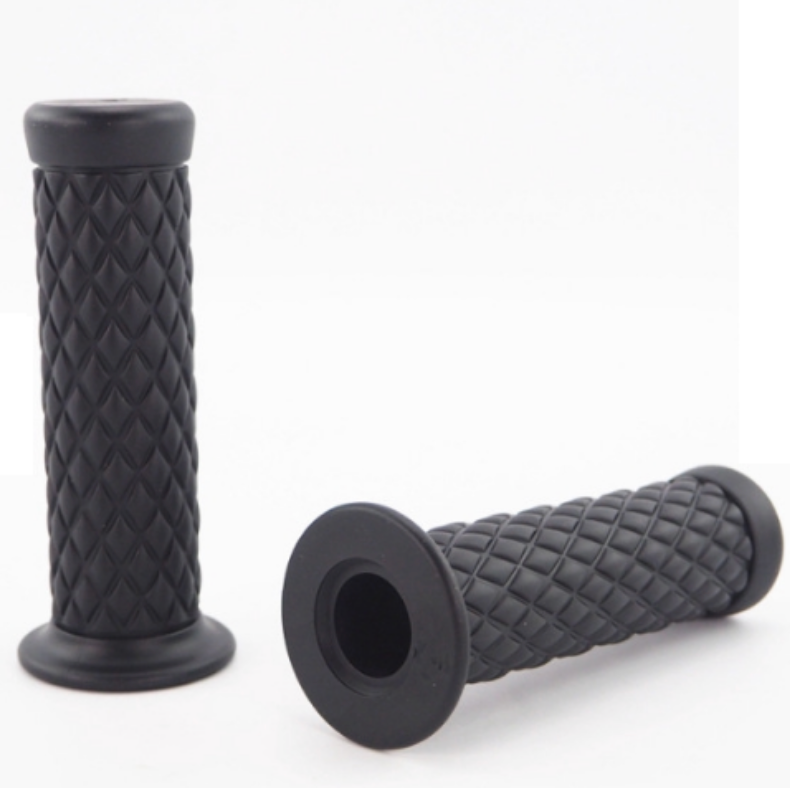 Cafe Racer Motorcycle Handle Grips – Vintage Style Rubber Handlebar Grips | Universal Fit | Black (2 Pcs)