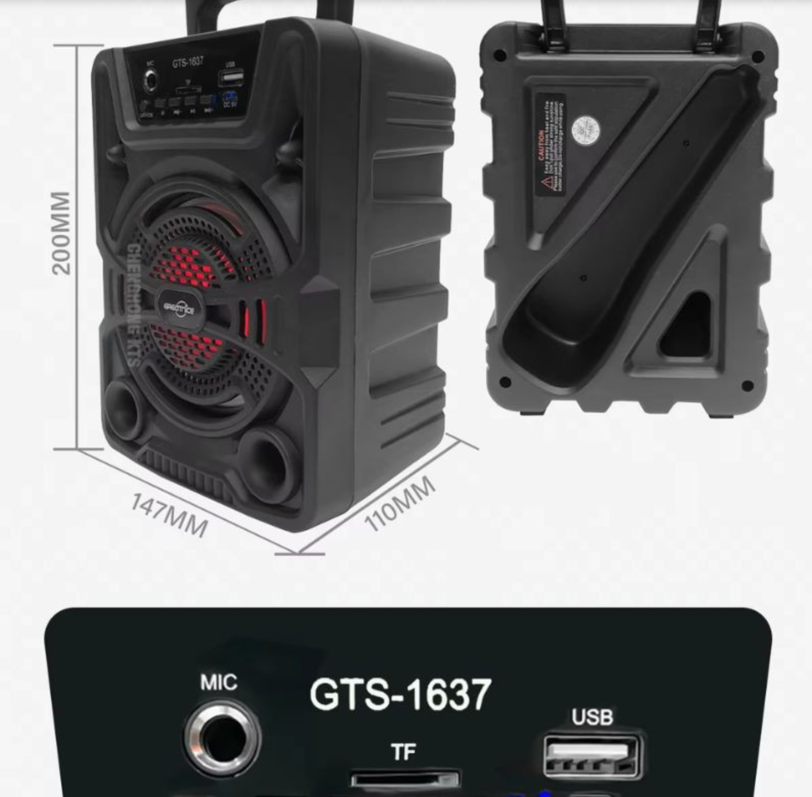 Experience powerful sound anywhere with the GTS 1637 Portable Wireless Bluetooth Speaker With MIC – perfect for indoor & outdoor entertainment, parties, karaoke nights, and family gatherings.