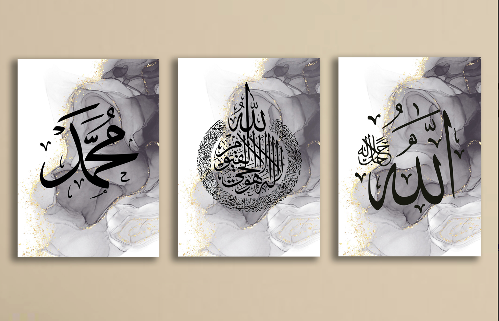Pack of 3 Islamic calligraphy wall art sticky frames for home decor/sticky photolines
