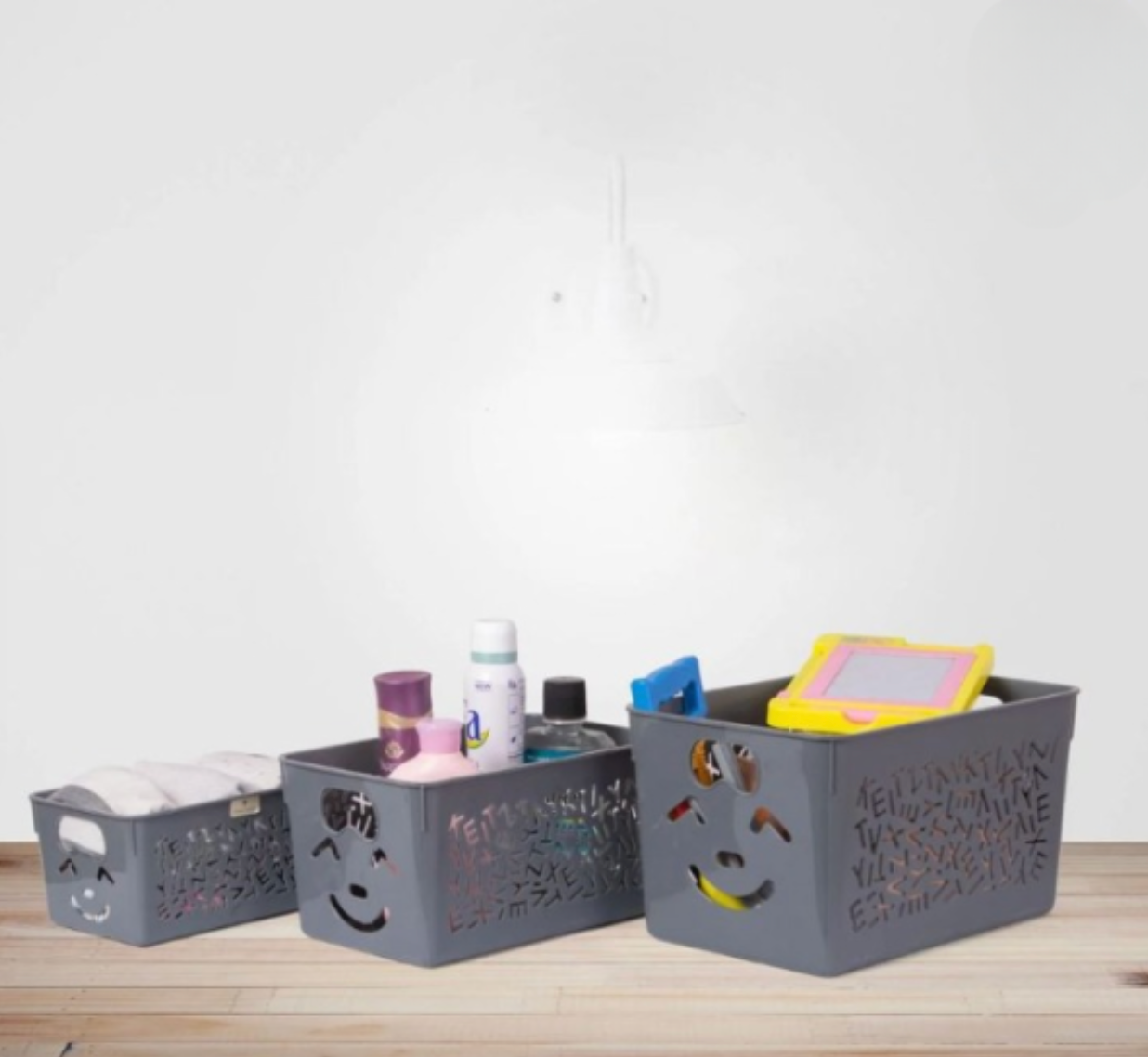 Pack Of 3 Smile Basket | Storage Organizer Basket | Multipurpose Baskets For Kitchen, Home, Office & Bathroom (random Color)